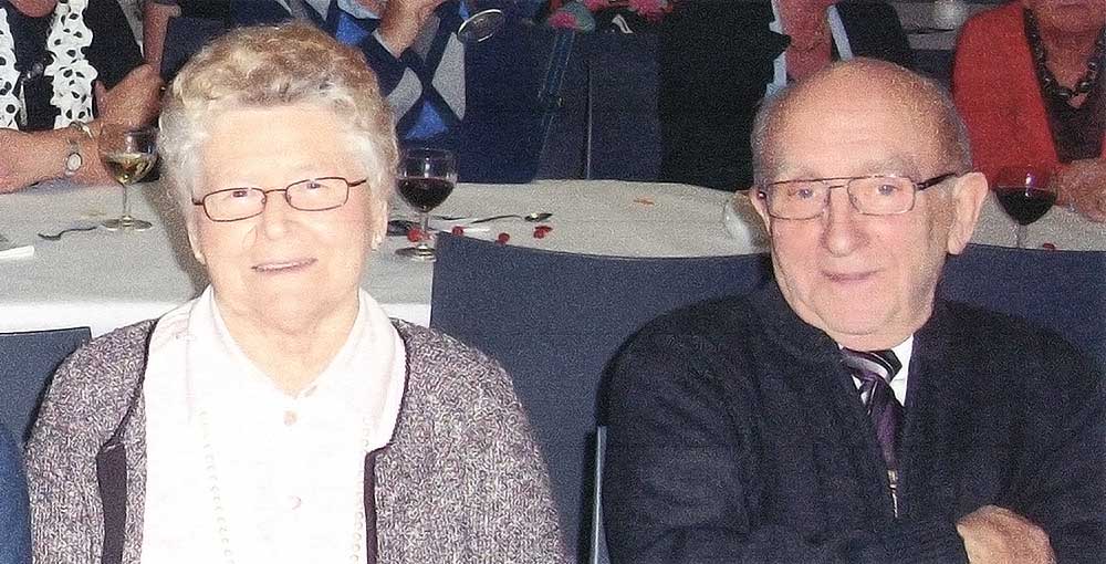 Elza Beckers (º1932-†2018) en Jan Voet (º1932-†2023).Deze foto stond op de uitnodiging voor het feest dat ze gaven voor hun 80ste verjaardag in 2012.