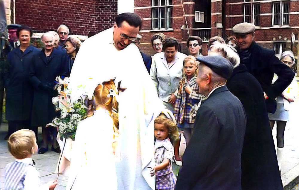 Aerts voor de kerk in 1972. Van Links naar rechts: 1 Jef